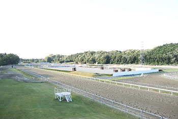 向こう正面の山肌を一部造成し設置したウッドチップ敷き坂路走路(平成20年完成、助走路350m、3%勾配300m、5%勾配70m)は、騎手候補生の訓練だけでなく、外部育成事業者や認定外厩馬の調教にも活用されています。