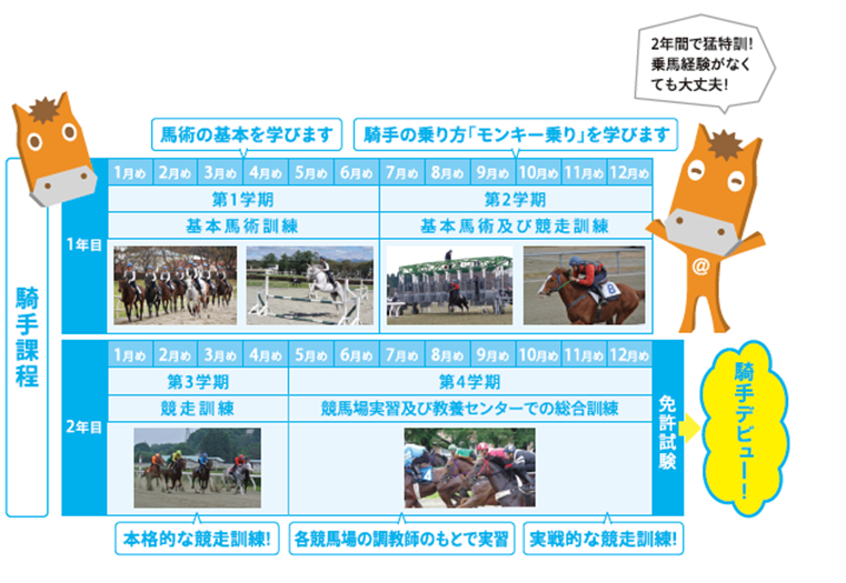 現在、地方競馬で活躍している騎手のほとんどがこの騎手課程を修了しています。