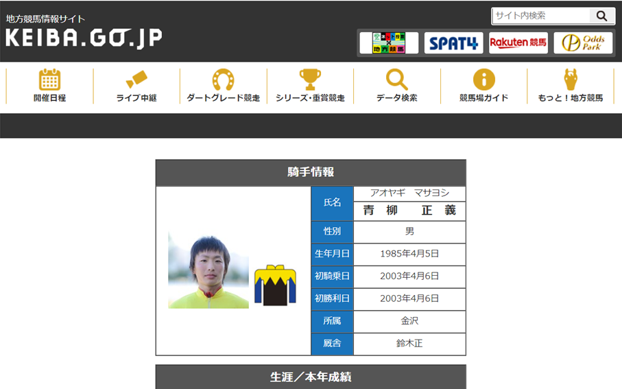 「地方競馬ライブ」は「出馬表」からも遷移することができます。