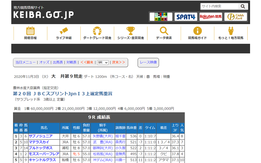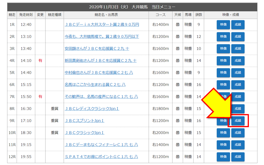また、当該場における1日の払戻金一覧は「当日払戻金」よりご確認いただけます。
