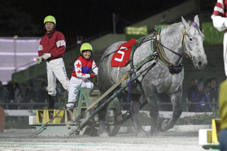 「LVRレディスヴィクトリーラウンド」第1ラウンドに先がけ、帯広競馬場にてばんえいエキシビションレースが行われました。レースには、宮下瞳騎手(愛知)、木之前葵騎手(愛知)、 別府真衣騎手(高知)、下村瑠衣騎手(高知)らLVR出場騎手が参加したほか、ばんえい競馬の女性騎手、竹ケ原茉耶騎手(ばんえい)も特別に出場しました。LVR出場騎手4名はばんえいの騎手とコンビを組み、竹ケ原茉耶騎手は単独でレースを行いました。レース結果は以下の通りです。