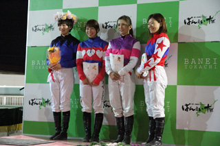 レースのほかにも、女性騎手たちによるトークショーやサイン会、オリジナルグッズがもらえる抽選会が行われ、帯広競馬場内は大盛り上がりを見せました。