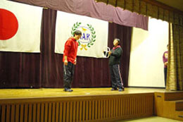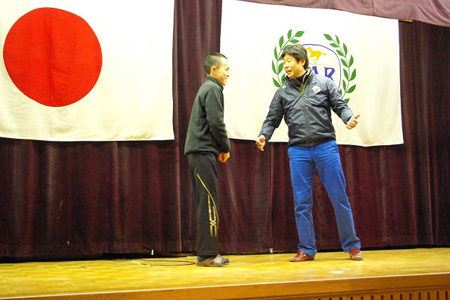 次は、菊池くんと、スペシャルゲストとして坂本先生が、ハンバーガーショップの店員と客のコントを披露してくれました。