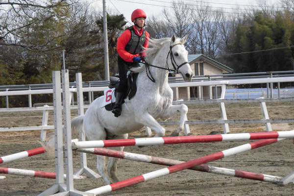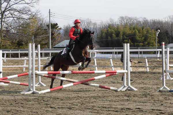 今回の技能審査では、普段から気を付けている注意点を上手くこなして騎乗することができませんでした。特に、次の障害に向かうときに手綱に頼った誘導をしてしまいました。脚の扶助を意識して使い、正確な誘導ができるようになりたいと思います。馬のペースは、経路走行の後半から良いペースになっていたので、スピードの感覚を磨いていきたいと思います。