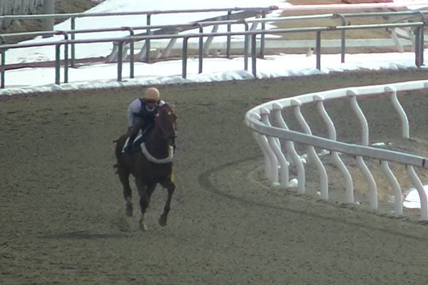 騎手免許試験第2次試験の技術の実技試験となる第1回修了実技試験に向けて、2月1日に単騎での「発走から追い込み」を行いました。