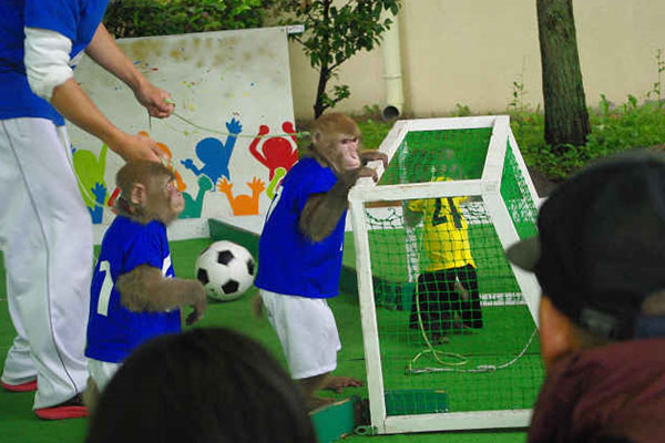 お猿さんたちの華麗な芸やショー、サッカー対決を観戦して大爆笑!