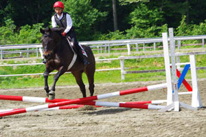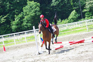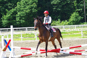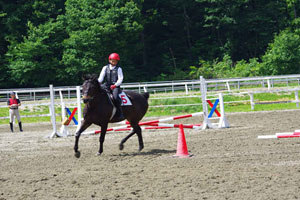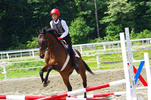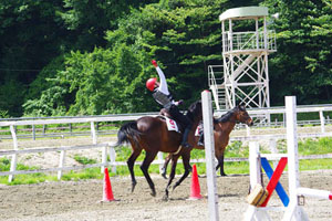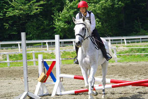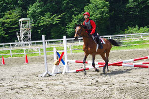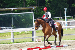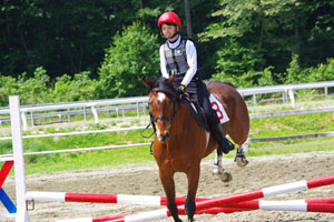1番最初でとても緊張していました。障害を飛んだ後、馬が走ってしまい、8秒止まらないといけない所を止まれなかったのが悔しかったです。でも楽しめたので良かったです。