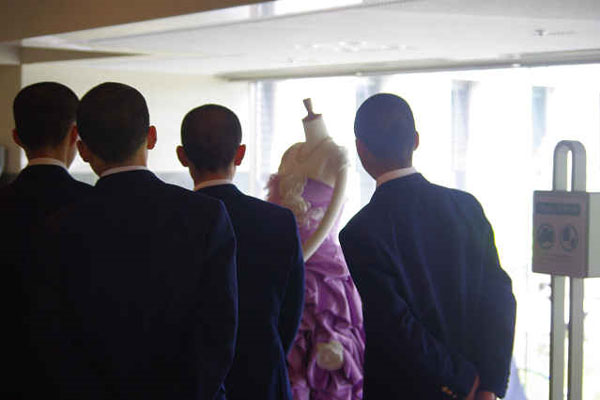 ヴィクトリアマイルでの誘導馬の騎乗者が着たドレスが展示されていました。