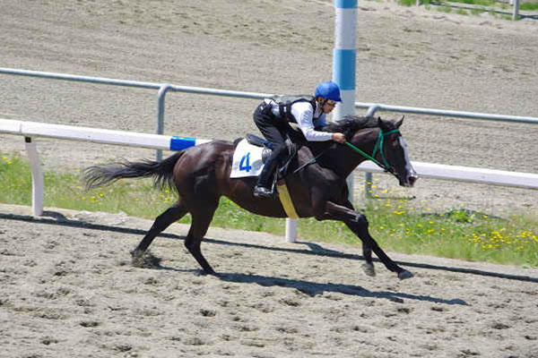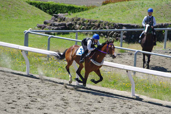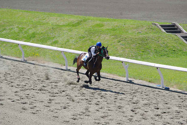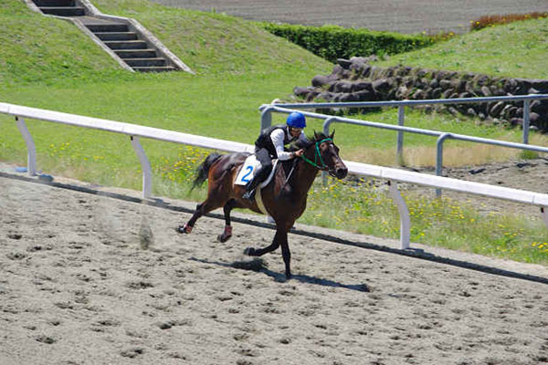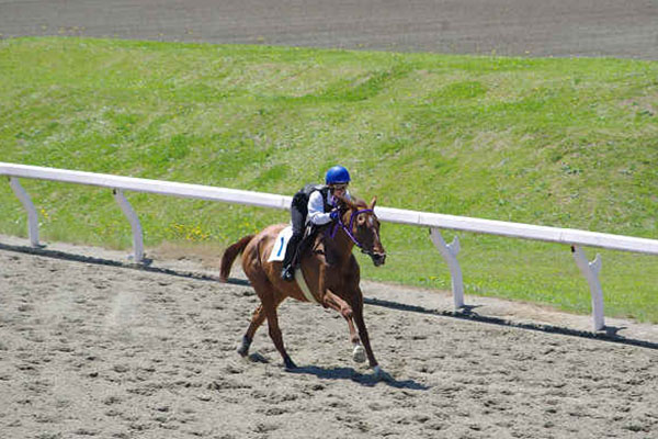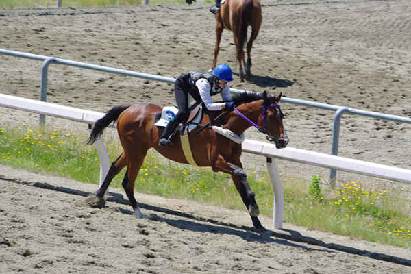 今回の馬なり操作では、徐々にペースを上げていき、直線は思い切り走らせる事ができて、感覚的にも馬が前に出た瞬間を感じる事ができました。しかしその中でも、手綱のつめかえのスムーズさが欠けていたり、拳を柔らかく使って追えなかったので、これからの訓練で手綱(たづな)のつめかえと馬の頭頸(とうけい)に合わせた拳の操作を重点的にやっていきたいです。