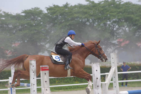 先輩との対抗戦で緊張しましたが、目標であった減点0で帰ってくることができ、勝ち点も取ることができてよかったです。最後まで連れて行ってくれた馬にも感謝したいです。