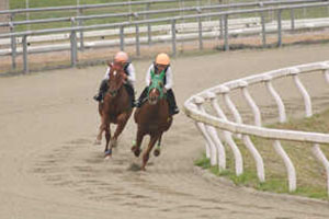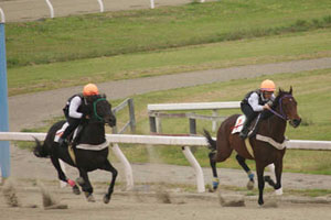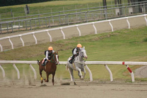 発走をしてからコーナーを回ってくるまでは思い通りにいったのですが、直線に入ってからは手綱の詰め替えが上手くいかず、ハミがかかっていない状態で*4)ハンドライドをしてしまいました。両親には、技術はまだまだですが競走に入ってからの半年間の成長を見てもらうことが出来ました。実習に行くまでにもっと技術を磨いて、また成長した姿を見せたいと思います。
