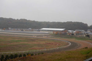 次に走路へ行きました。1周1200mで、地方競馬だと浦和競馬場、川崎競馬場、水沢競馬場と同じ距離です。