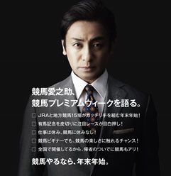 平成30年12月22日(土)から平成31年1月6日(日)までの期間中、年末年始広報イメージキャラクターである歌舞伎俳優の片岡愛之助さんが「競馬愛之助」としてテレビCMや特設サイトを通じて競馬の魅力をお伝えします。