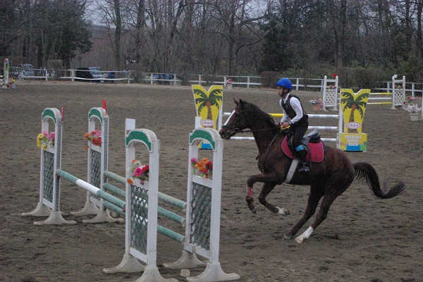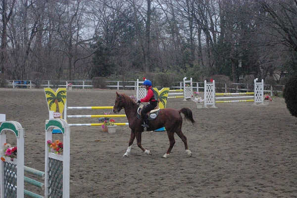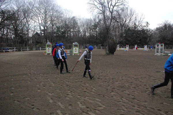 参加した競技は、減点が少なくタイムの早い人馬の勝ちというルールだったので、先生とタイムロスが無いところを探りながら、競技前の下見を行いました。