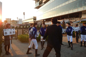 今回は、騎手紹介のプラカードを持たせていただき、TVにも少し映りましたw( ´∀` )w