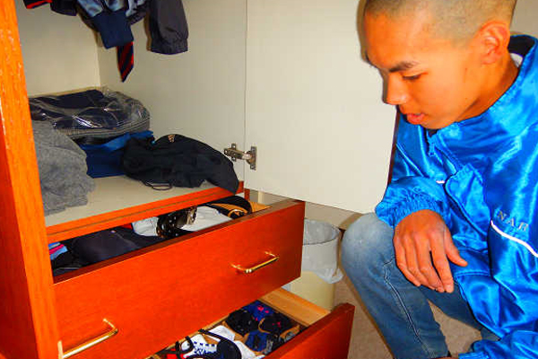 まず部屋に入っての第一印象は整理整頓がされ靴下などが1マス1マス収納されていて部屋がとても綺麗でした。先生の話によると毎週水曜日にJRAの先生が泊まると聞いてとてもびっくりしました。身の回りの整理ができていて、人として一歩先を行かれているような感覚を受けました。