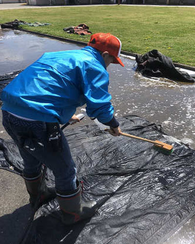 デッキブラシと洗剤でキレイに