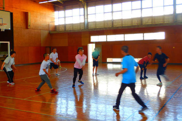 毎年行われているソフトバレーボール大会で、先生と混合のチームを組み、優勝を目指して争います。