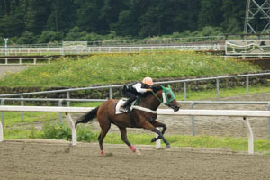 ゲートでは馬の邪魔をせずに出ることができ、4コーナーまでは指示通り、内埒(うちらち)から3馬幅目(およそ3m)を走らせることが出来ました。追い込みでは、実習前より態勢を沈めて追えるようになりました。ですが、直線で手綱の保持が甘く、馬が内側に行ってしまったので、しっかり真っ直ぐに走らせられるようにしていきます。