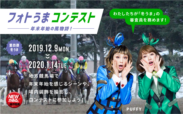 また、4thシーズンの「冬うま」では、審査員に年末年始競馬を盛り上げるイメージキャラクターとして起用しているPUFFYさんをむかえ、魅力あふれる優秀作品を決定していただきます!