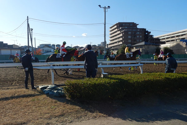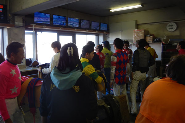 レースを終えた騎手たちが、検量をしに次々と集まってきました。