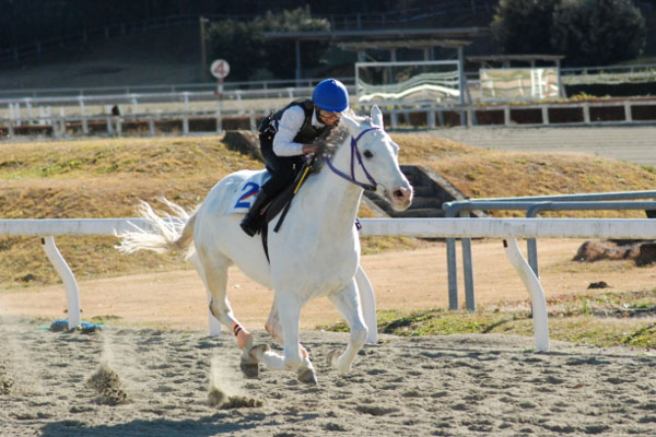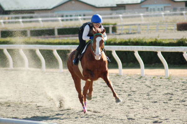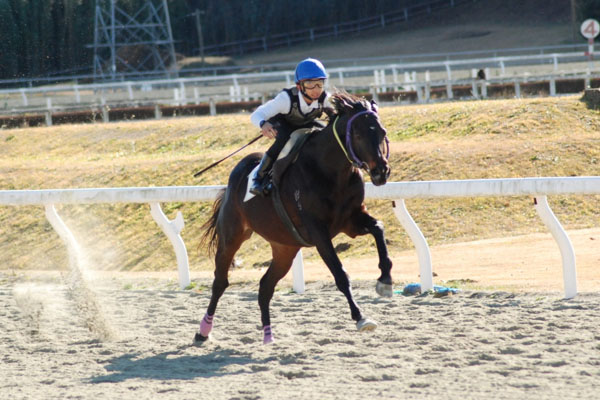 今回の追い込み操作では、低い姿勢の中での手綱の詰め替え、見せ鞭などが思った以上に難しく、鞭を打つのに体を大きく使ってしまいバランスを崩していました。今まで以上にイメージトレーニングを木馬に乗りながらしていき、馬上で冷静に乗れるようになりたいです。これからも日々の訓練を大切に乗っていきたいです。