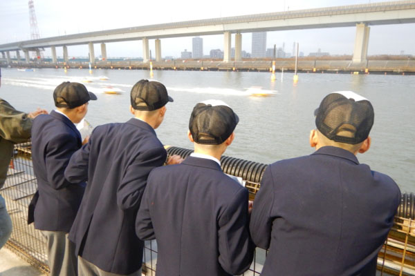 江戸川ボートレース場では施設見学やプロの方から乗り方を教わったり、レースを観戦したりしました。