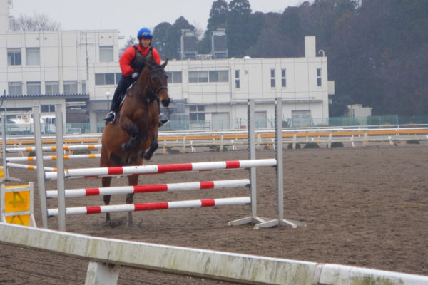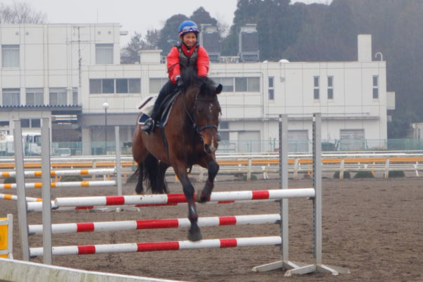 競馬学校の対抗戦では、馬を障害に対して真っ直ぐ誘導することが出来ず、馬とのリズムを崩してしまいました。