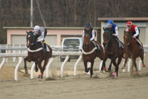 追い込みでは、もっとハミをかけて馬に反応させるようにします。
