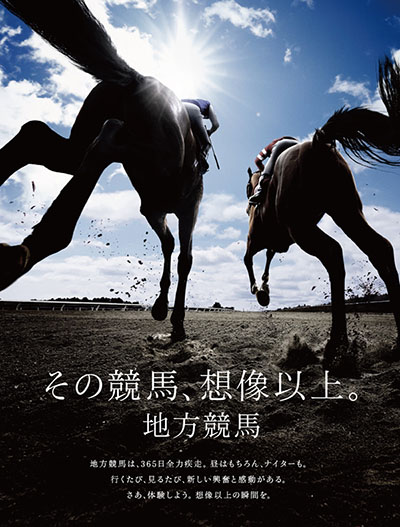 今年度は「その競馬、想像以上。地方競馬」をスローガンに、お客様に「想像以上」の興奮と感動をお届けすべく、様々な取り組みを実施してまいります。