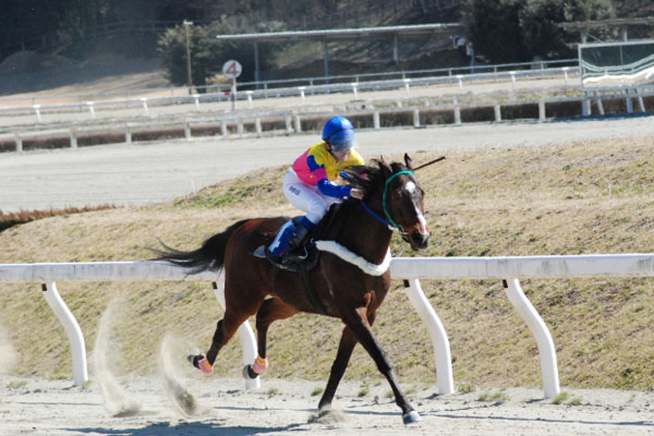 『2年間で、自分のことがいろいろわかりました。成長できたのは、先生方やいつも応援してくれた家族、実習でお世話になった調教師の先生や厩務員さんのおかげです。騎手になって、いろいろな方に恩返し出来るよう、精一杯がんばります。』