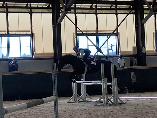 練習でペースが悪く馬が障害をよけてしまっていた部分が本番では、避けられずにコースを回る事が出来て嬉しかったです。今回の技能審査の反省点を生かして今後の練習に繋げていきたいです。