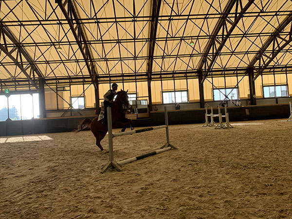 障害を飛ばすことにいっぱいになってしまい、誘導や扶助操作などが雑になってしまったので、今後は飛ばせることだけでなく、姿勢なども意識し、馬に感謝しながら騎乗したい。ホウオウありがとう。