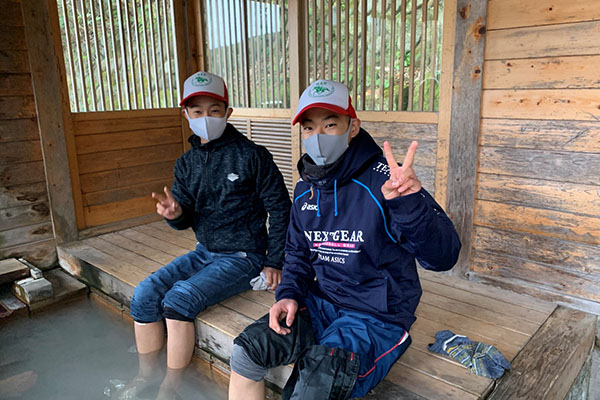 山登りを終えた後、みんなで足湯に入りました!