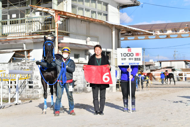 笹野博司調教師(笠松)は1月28日(金)の笠松競馬第9競走をシークロムで優勝し、2012年6月の初出走以来、6,690戦目にして地方競馬通算1,000勝を達成しました。