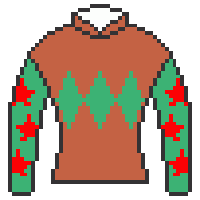 茶色は地方で馬主服を除き誰も使用していないため、唯一無二にしたかったのと、緑色は1番好きな色で、菱山形は騎手を目指した時から憧れていた柄だからです。袖は緑地赤星で誕生月のイベントであるクリスマスカラーです。 |