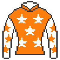 厩舎カラーのオレンジに緑を入れて目立つようにし、兄弟子である半沢騎手の柄を頂きました。 |
