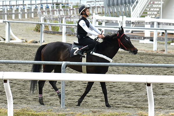 阿岸:6頭立ての競走実習でしたが、冷静に馬に合ったレース運びをすることができました。馬を信じて乗れたのが良い結果につながったと思います。追い込みはまた課題を見つけることができたので、次の競走実習に向けて努力していきたいです。