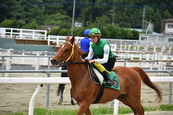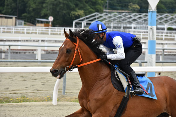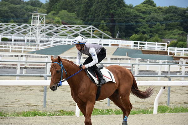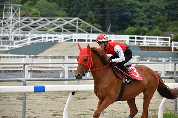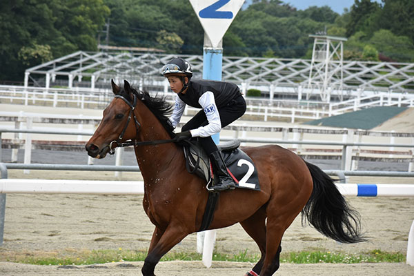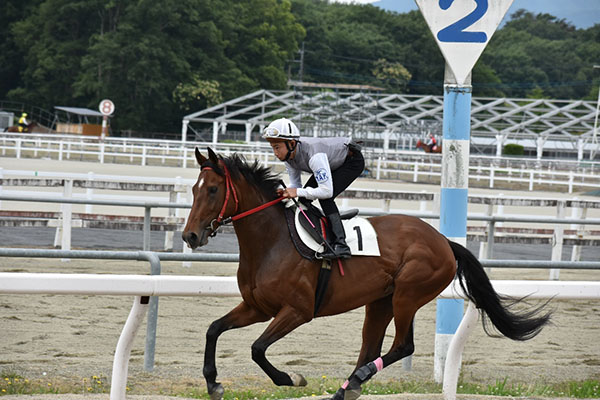 初めての右回りで慣れないところがありましたが、ゲートの発進や進路取りコーナーの周り方は大きなミスがなくできました。併走での馬幅間隔が開いていたにもかかわらず、寄せられず、距離をロスしてしまったので空けばすぐに寄せていくよう意識していきます。追い込みでは沈み込みが甘くなってしまったのでさらに下半身を強化していきたいです。