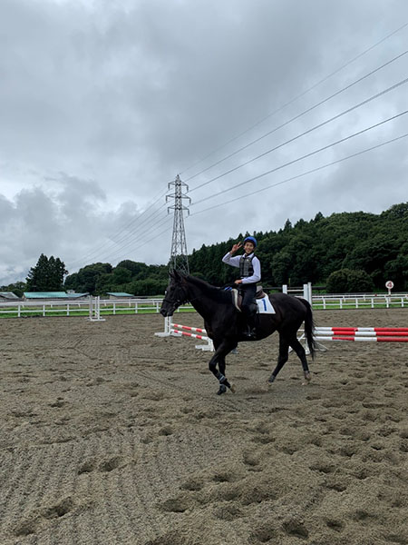 難しい馬だったのですが、減点ゼロでゴールできて良かったです。運良くいいタイムが出せてとてもうれしかったです!この結果に満足せず、日々の訓練に励みたいです。