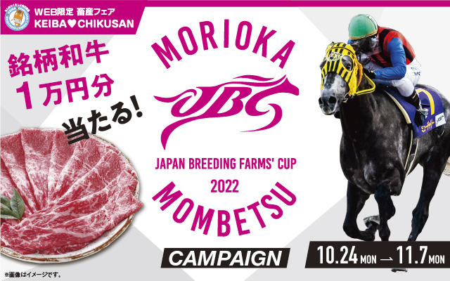 JBC2022の開催を記念して、銘柄和牛1万円相当や、JBC2022オリジナルグッズなどの賞品が抽選で合計300名様に当たるWEB限定畜産フェア「KEIBA♥CHIKUSAN JBC2022キャンペーン」を以下のサイトで実施します。応募ページで流れる動画をご視聴いただいた後、簡単なアンケートに答えていただいた方が対象となります。