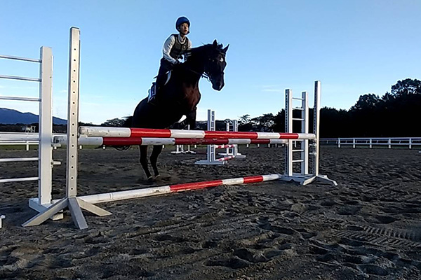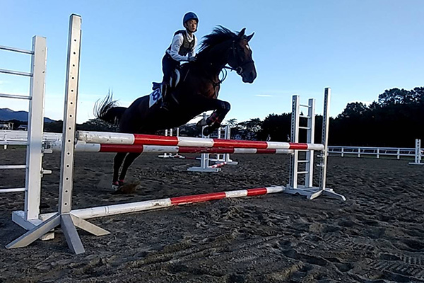 今回も1位をとることができました。ダブルの後ろで1つ落下があり、自分が馬を戻せなかったので、馬を上手く助けてあげられませんでした。今後の訓練で応用的な馬術を学び、競走でもみんなに負けないように努力したいと思います。