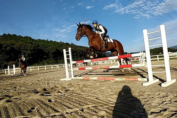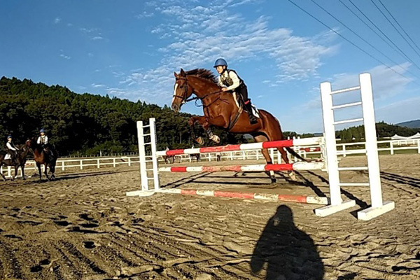 練習よりも脚で挟みながらいいペースを作って乗ることが出来ました。しかし、まだ伏せ拳になったり、飛んだ後の戻りが悪かったりするので、今後の訓練の中で意識して乗っていきたいと思います。