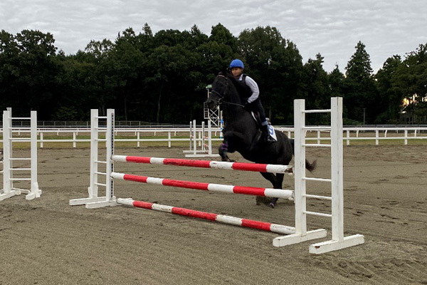 今回の技能審査では練習の時よりもあまり前に進んでいませんでした。2番障害の前で歩数を合わせようと必死でしたが、手綱を所々はなしてしまい、最後の障害で馬に止まられてしまいました。次の訓練では障害をした時に良いスピードで入れるように意識して乗っていこうと思います。