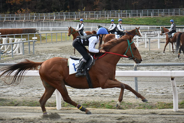 練習の時はあまり折り合いをつけることが出来なかったのですが、本番では少し折り合いをつけることが出来ました。まだ自分のバランスや姿勢など色々足りていないのでこれからの訓練で身に付けていきたいです。12月に入ると追い込み操作や発走などもっと難しくなってくるので自主トレをして訓練に遅れないように頑張っていきたいです。