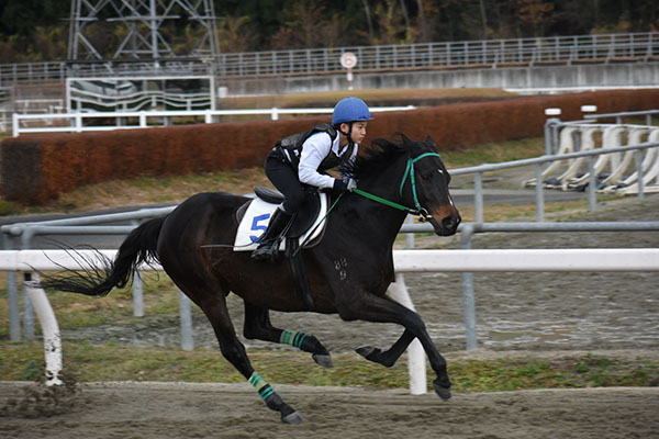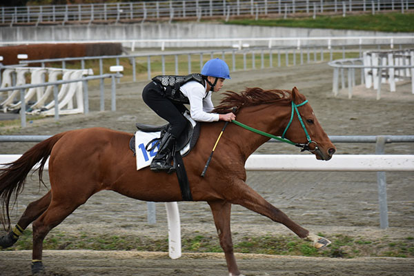 馬なりを初めてしました。初めてスピードを出して乗って風の音すごかったです。コーナーで外に膨れなかったことが良かった点です。自分が思っていた騎乗が出来ていなかったので、次は焦らずに落ち着いて乗れるようにしたいです。次の追い込み操作でも頑張ります。