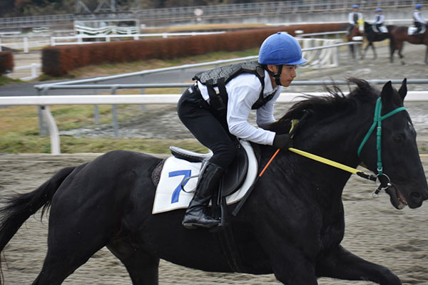 今回は初めての馬なり操作で初めてのスピード感で頭が真っ白になってしまい、思っていた騎乗姿勢など、丁寧に騎乗することが出来ませんでした。次の追い込み操作では一つ一つ丁寧に出来るように日々の訓練を頑張っていきたいと思います