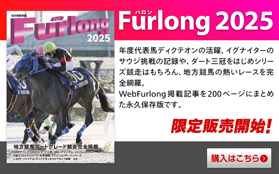 本日4月1日(水)より、2025年に行われた地方競馬の注目レースなどをまとめた『地方競馬年鑑ハロン2025』の販売を開始しました。購入を希望される方は、こちら(外部サイト)よりご購入ください。